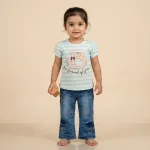 Paired with a trendy denim trouser, this outfit offers both style and durability. The comfortable fit allows easy movement, making it perfect for playtime, daily wear, and outings.
